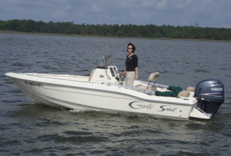 I’m having a great time on my new 187 Sportfish on the Wando River! Note the name – this is my third “Girl’s Scout”. I started off with a sweet little 155 SF in 1996. I traded up to a 175 SF in 2001 and had ten great years on that boat. A month ago I traded the 175 for a 187 SF and can’t wait to get her down to the Florida Keys this summer. I got all three boats from Mid-Carolina Marine in West Columbia, S.C. because they are great with both sales and service. Thanks Scout and Mid-Carolina Marine!