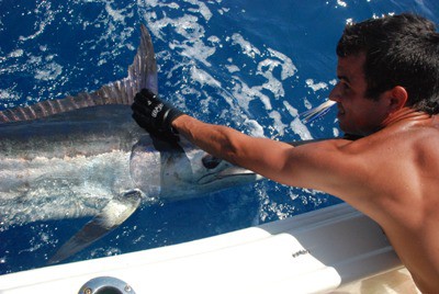 We are in Puerto Rico, north of the island in Dorado in our 175SF, from 3.7 to 5.6 nautical miles from shore, we have got three Blue in four half days fishing, 280 lb, 135 lbs and the one in the photo that was calculated at 150 lbs all in 30 lbs test line. All full release after taking the hook out and making sure they where alive when released. With a three man crew, except the 135 pounder that was me and my younger son alone. Last month we lost a 400 pounder after a 1/2 hour fight, that one was legal to board, but never got near the boat for gaffing. Again let me tell you what fine boats you build.