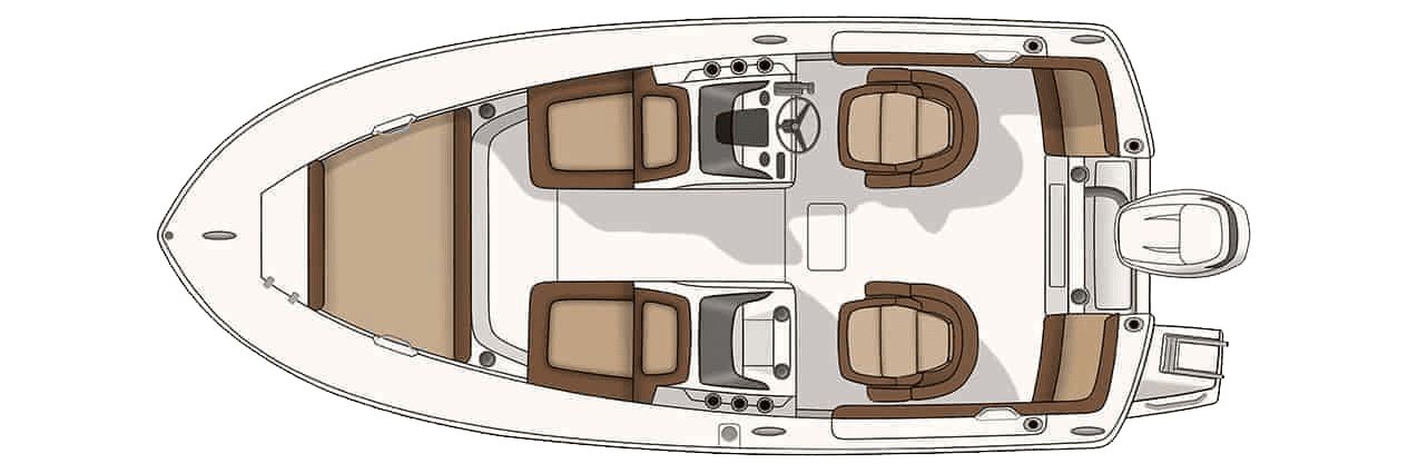 The 195 Sport Dorado is smartly designed to accommodate all your on-the-water activities. It has ample rod storage including four S.S. flush mounted rod holders, under gunnel rod storage, and six console rod holders. A port aft recirculating baitwell, bow cushion set, under gunnel LED lights, a swim platform with ladder, and unique hidden storage compartments in the bow cushion backrests are just some of the notable standard features.