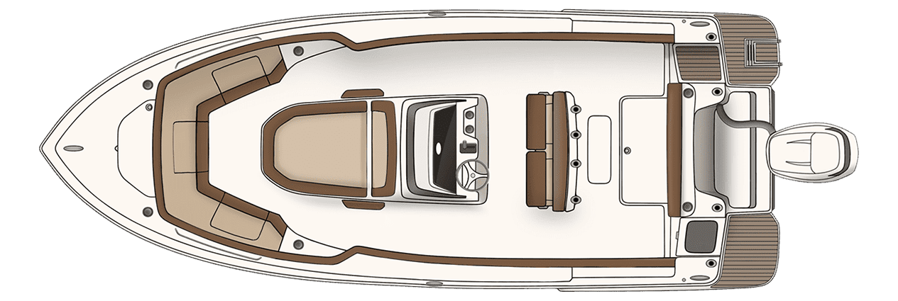 The 215 XSF is built on Scout’s revolutionary fuel saving NuV3 hull design, while the deck offers ample standard amenities for everything from serious fishing to comfort cruising. Built with 100% hand-laid fiberglass, the boat boasts a wide comfortable beam of 8’ 6” with an overall length of 21’ 6”. A notable standard feature onboard the 215 includes not only the forward seating in the bow, but also a forward sun lounge/coffin box complete with a cushion.