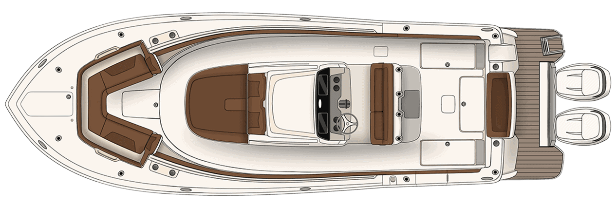 Step aboard the only 30-footer in its class with a console berth down below and optional air conditioning: our 305 LXF. Enjoy the convenience of a removable bow table while enjoying your favorite music on the six-speaker sound system with optional subwoofer and amplifier. Power the model on and off with the simple push of a button from your remote key fob. Comfort, style, and performance are all standard and ready for you to enjoy whether it’s offshore, or a date night excursion to your favorite waterfront restaurant.